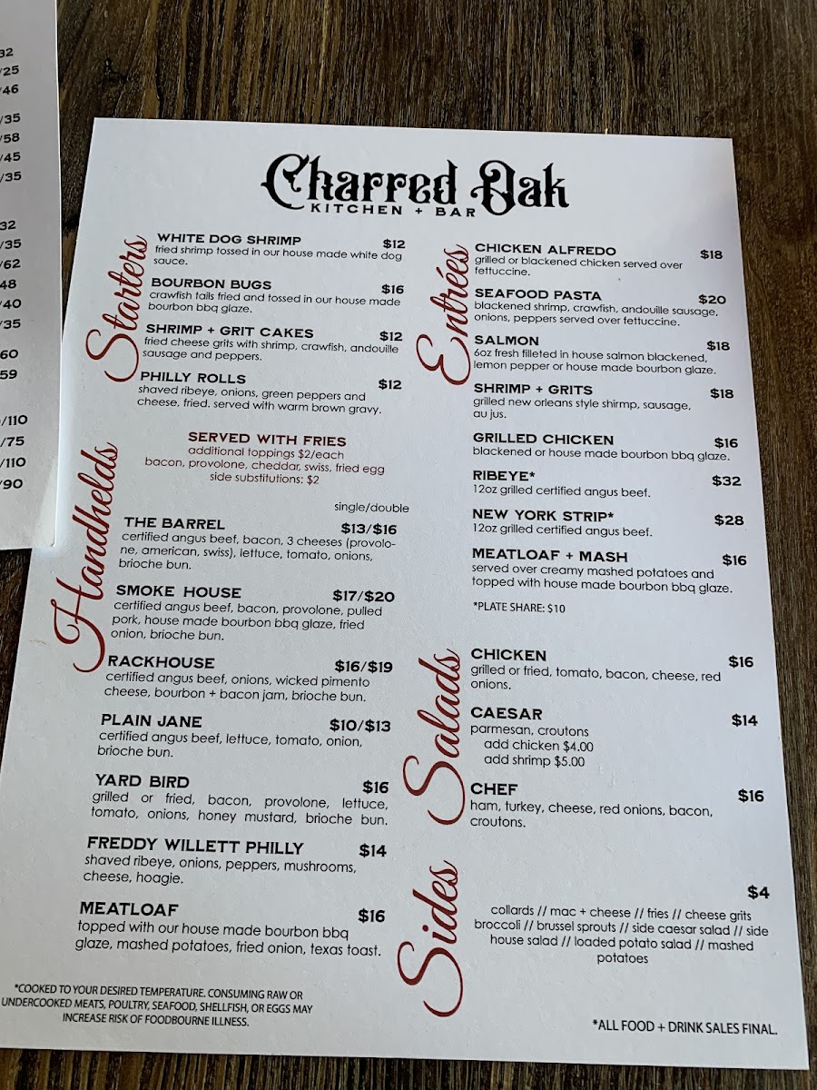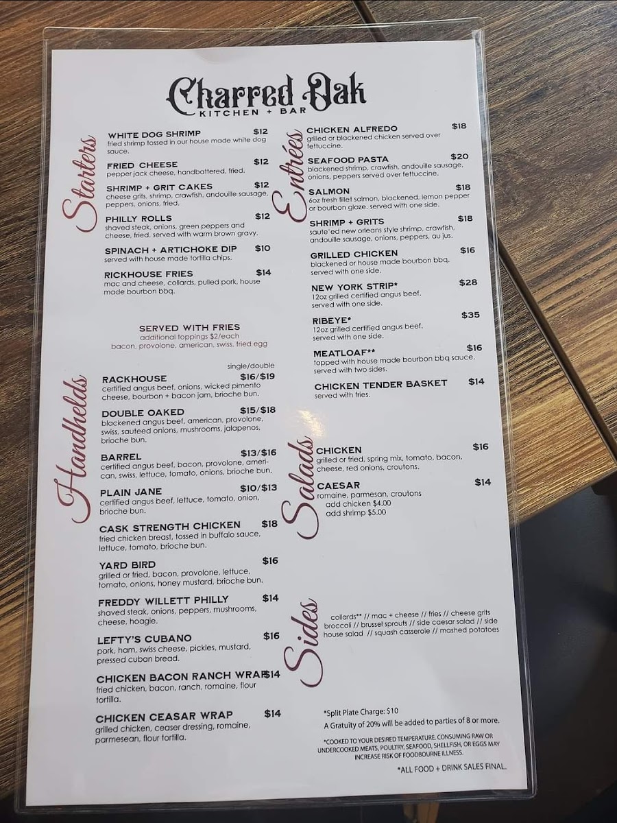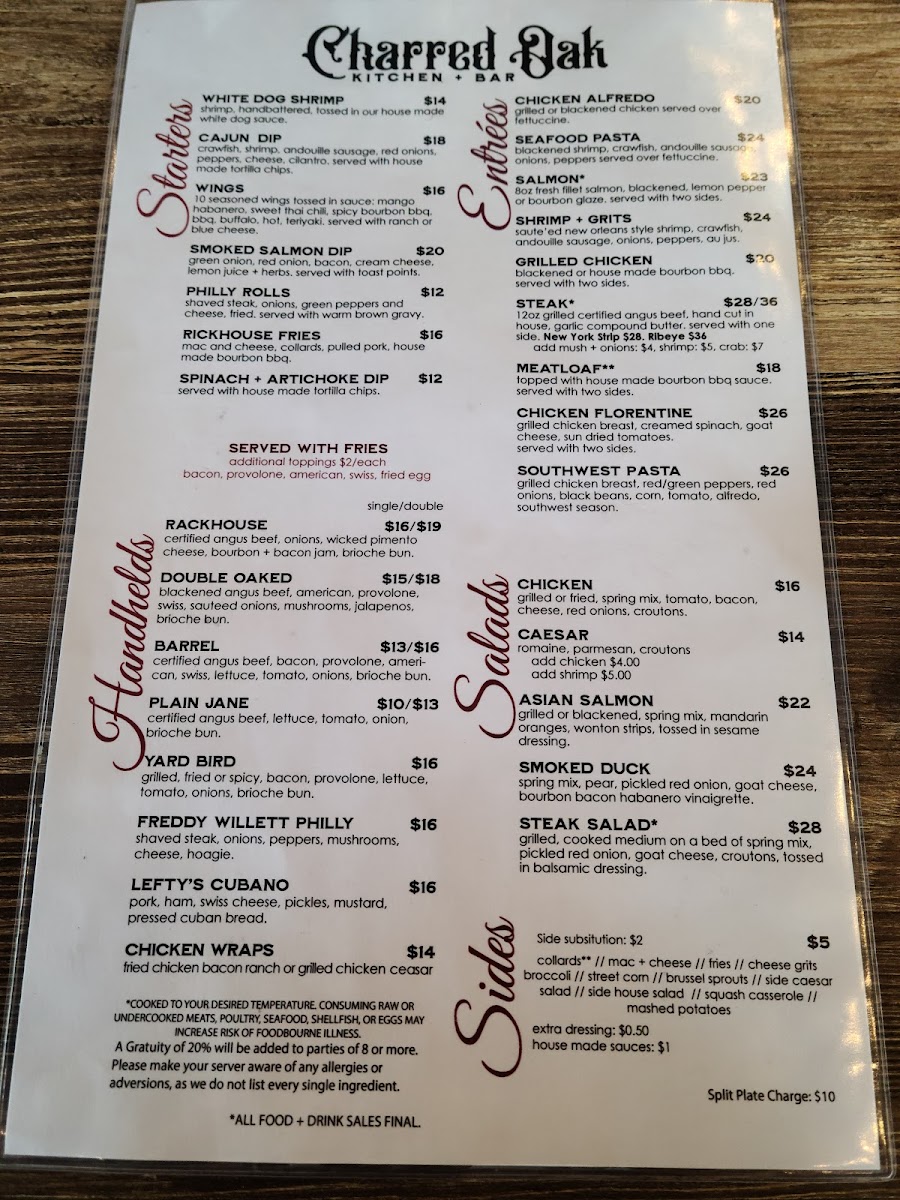 Charred Oak Kitchen Bar Menu (2025 Update)