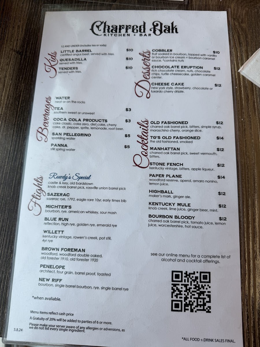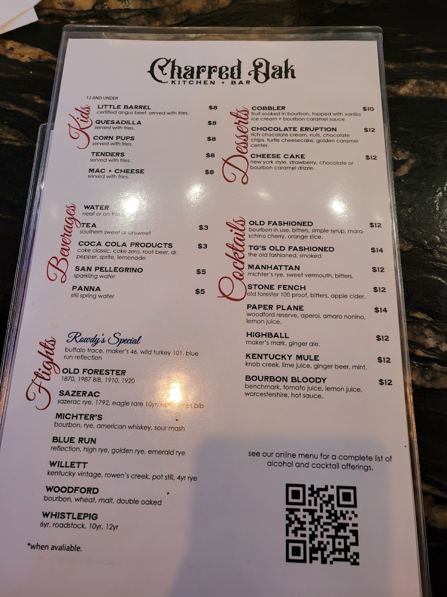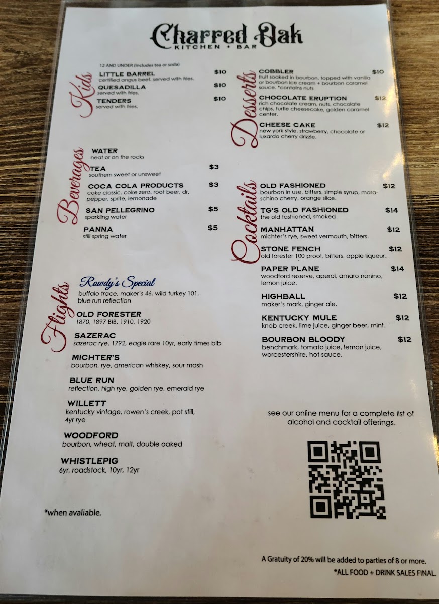 Charred Oak Kitchen Bar Menu (2025 Update)